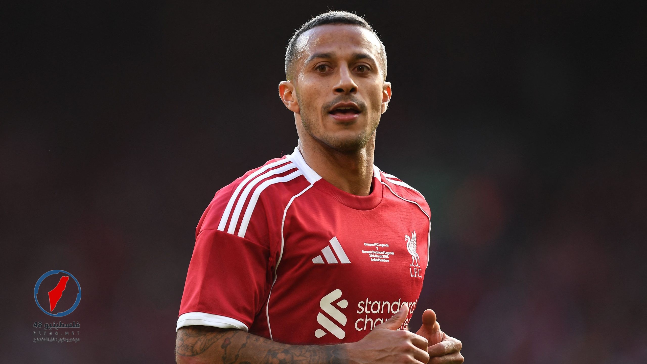 تياجو ألكانتارا يذرف الدموع خلال تكريم ديوغو جوتا في مباراة أساطير ليفربول