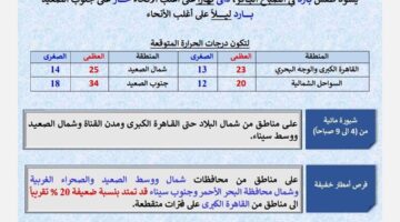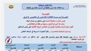 الأرصاد تعلن عن أمطار خفيفة وشبورة في طقس اليوم الإثنين